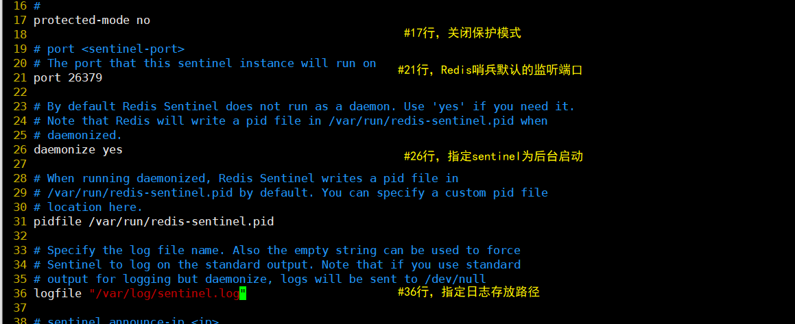 logfile "/var/log/sentinel.log" #36行,指定日志存放路径