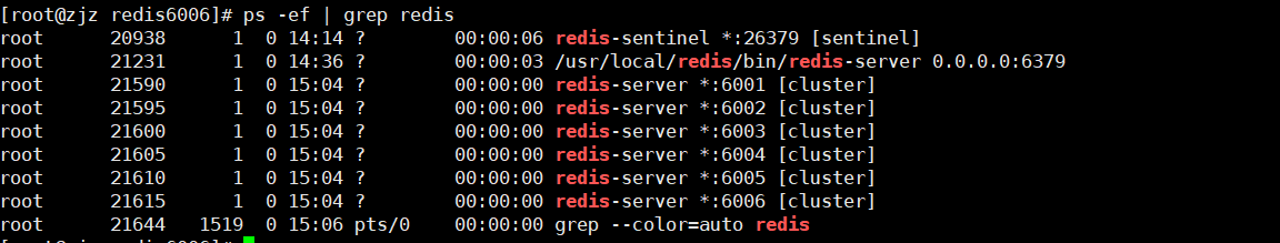 方法一:分别进入那六个文件夹,执行命令: redis-server redis.conf,来启动redis节点