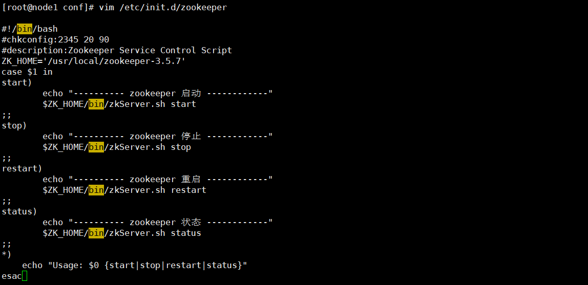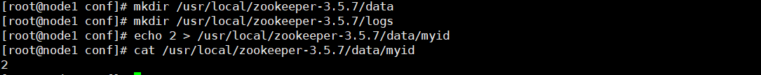 echo 1 > /usr/local/zookeeper-3.5.7/data/myid