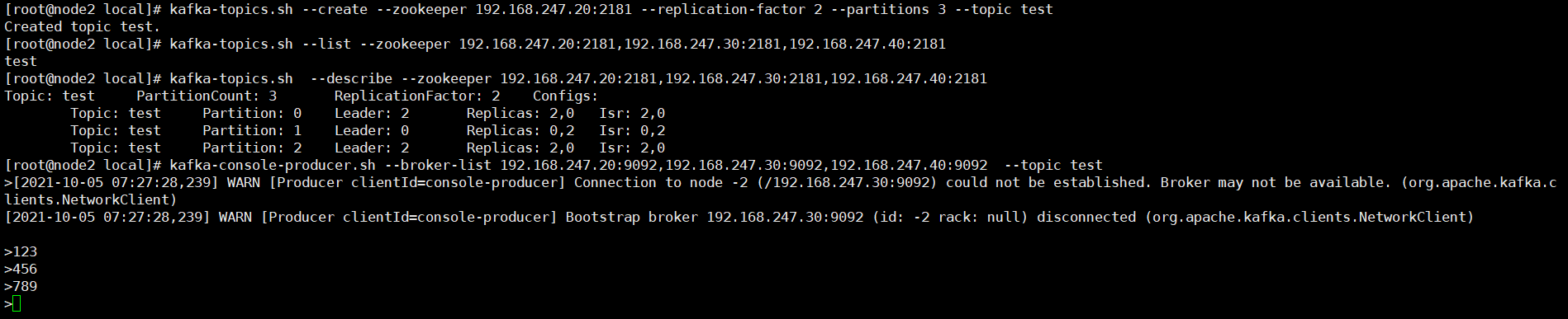 kafka-console-producer.sh --broker-list 192.168.247.20:9092,192.168.247.30:9092,192.168.247.40:9092 --topic test