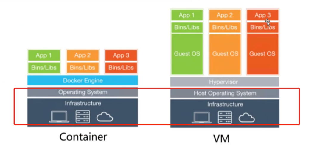 虚拟机运行的是一个完成的操作系统,通过虚拟机管理程序对主机资源进行虚拟访问,相比之下需要的资源更多。