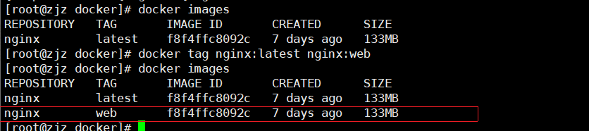 docker tag 名称:标签 新名称:新标签