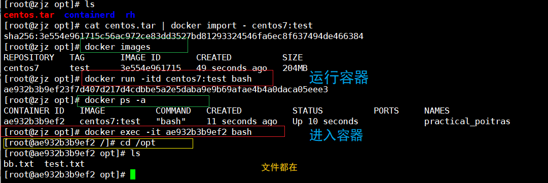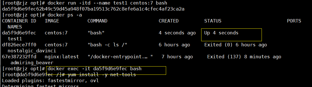 docker run -itd --name test1 centos:7 /bin/bash