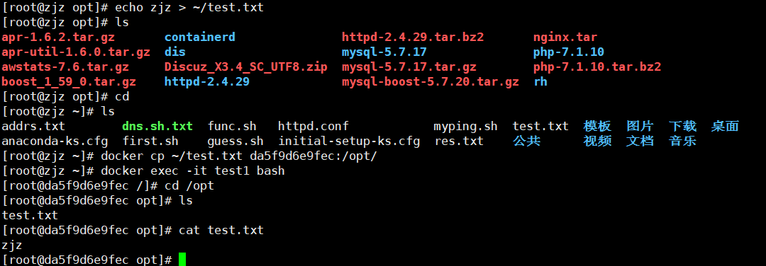docker exec -it test1 /bin/bash