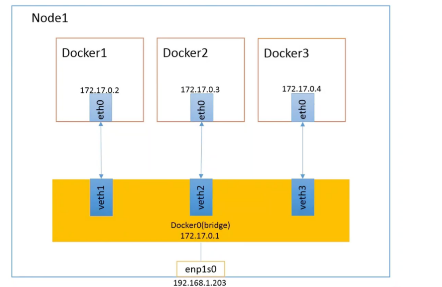 此模式会为每一个容器分配Network Namespace、设置IP等,并将一个主机上的Docker容器连接到一个虚拟网桥上。