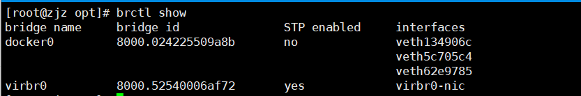 可以通过brctl show 命令查看。