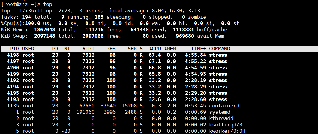 yum install -y epel-release && yum install -y stress #安装测压软件