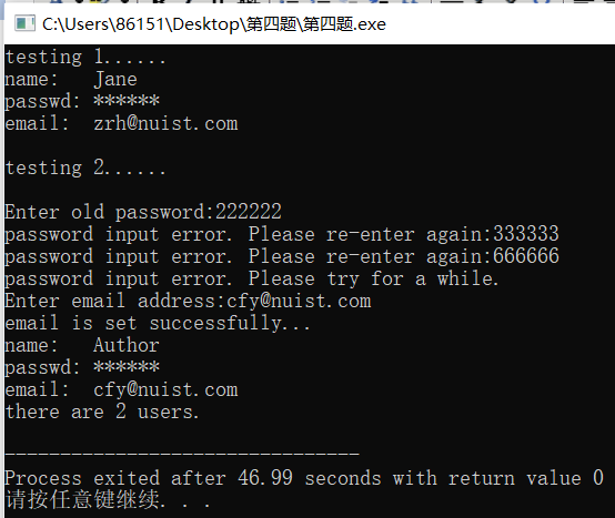 46 cin>>newpsw;