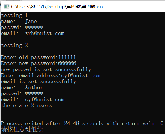 9 User user1("Jane", "113030", "zrh@nuist.com");