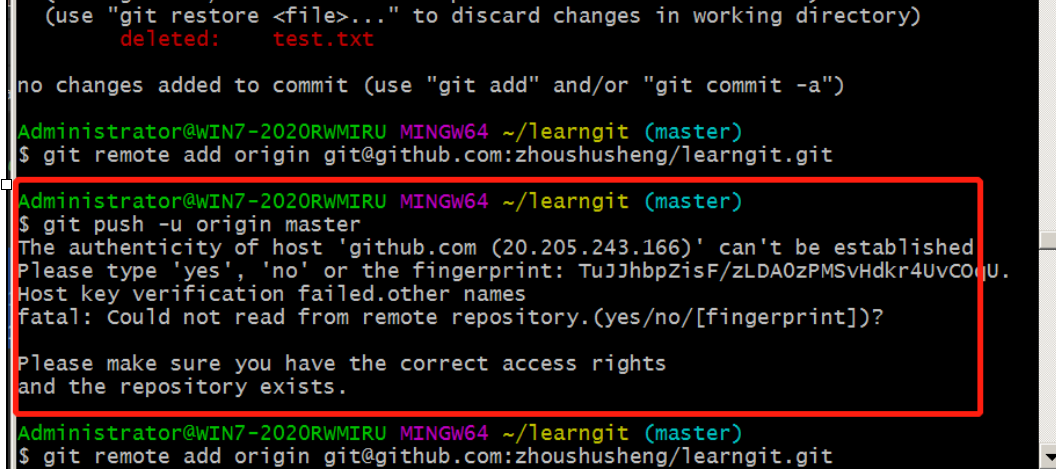 Git会输出一个警告,告诉你已经把GitHub的Key添加到本机的一个信任列表里了: