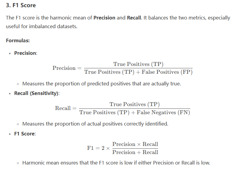 | Actual Positive | True Positive (TP) | False Negative (FN) |