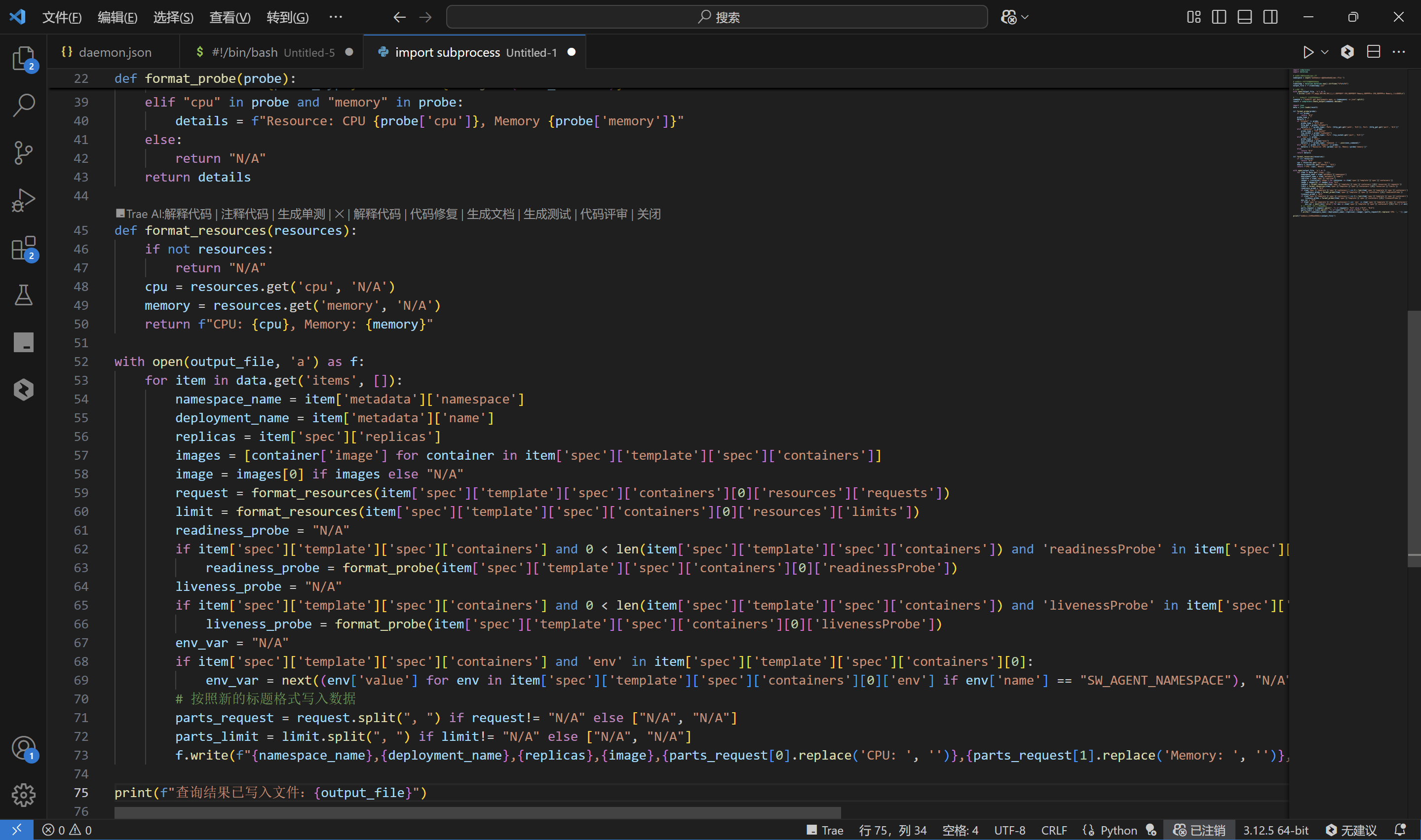 然而,在使用版本二的过程中,我发现生成的 csv 文件里,副本数和容器镜像信息难以清晰区分。面对这个问题,我决定采用在文本格式处理上更具优势的 python 重写脚本,经过反复调试与修改,最终成功解决了难题。