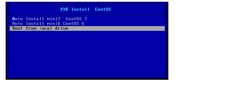 [root@centos6tftpboot]#vim pxelinux.cfg/default default vesamenu.c32 #prompt 1 timeout 100 超时时长修改至10s label linux menu label ^Auto Install Mini centos 6 system 修改为自动安装 menu default kernel vmlinuz append initrd=initrd.img ks=http://192.168.34.105/ksdir/ks6_mini.cfg 指定当前的应答文件路径 label local menu default 设置一个默认安装 menu label Boot from ^local drive localboot 0xffff