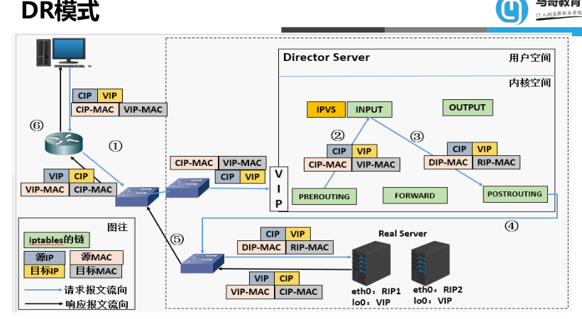 lvs-dr:通过封装新的MAC首部实现,通过MAC网络转发