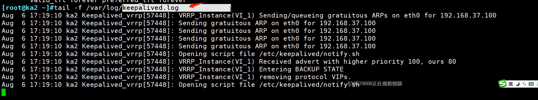 3、systemctl restart rsyslog keepalived