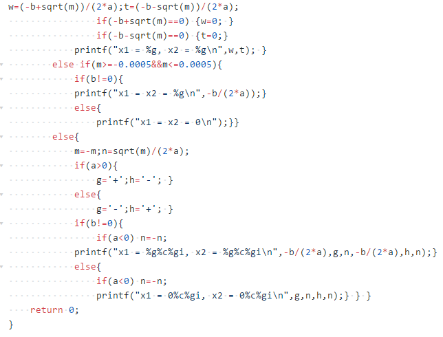 | -2 0.8 -0.06 | x1 = 0.1, x2 = 0.3 | 若 Δ>0,则方程有两个不等的实根,输出这两个根 |