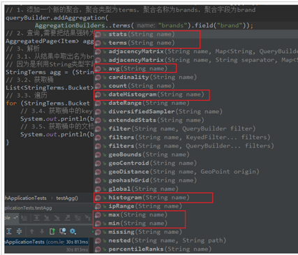 // 1、添加一个新的聚合,聚合类型为terms,聚合名称为brands,聚合字段为brand