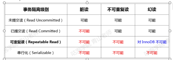 - 事务隔离级别: