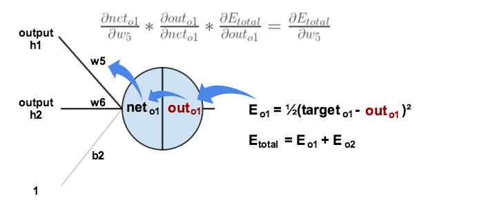 其中需要注意的是,每一个神经元内部的结构有输入和输出,求偏导的时候,要分别考虑到它的输入和输出。如下所示: