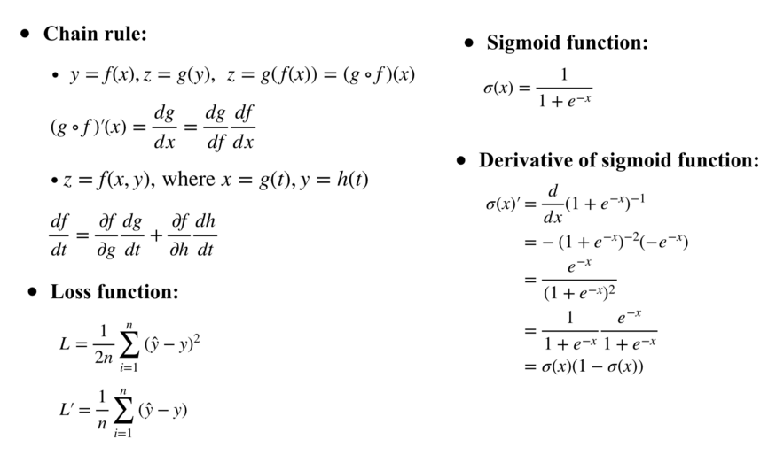 接下来我们看一下求BP的时候,需要的一些公式和知识点,loss我们使用mse代替,因为好算