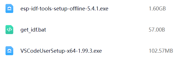 注意:资料提供的软件包后续可能会更新,如果进行了更新,那么文件名称会改变,但是改变的只会是版本号,关键信息不会改变,比如esp-idf-tools-setup-offline-5.4.1.exe,不管版本如何变化都会保留有esp-idf-tools-setup-offline关键字,通过该关键字对应即可。