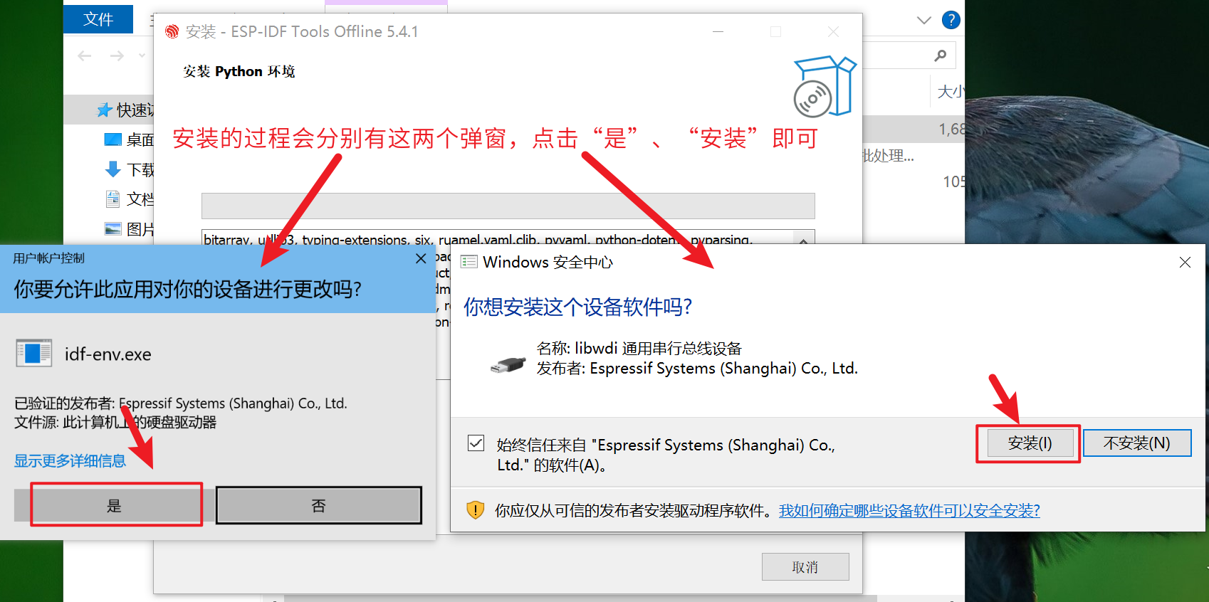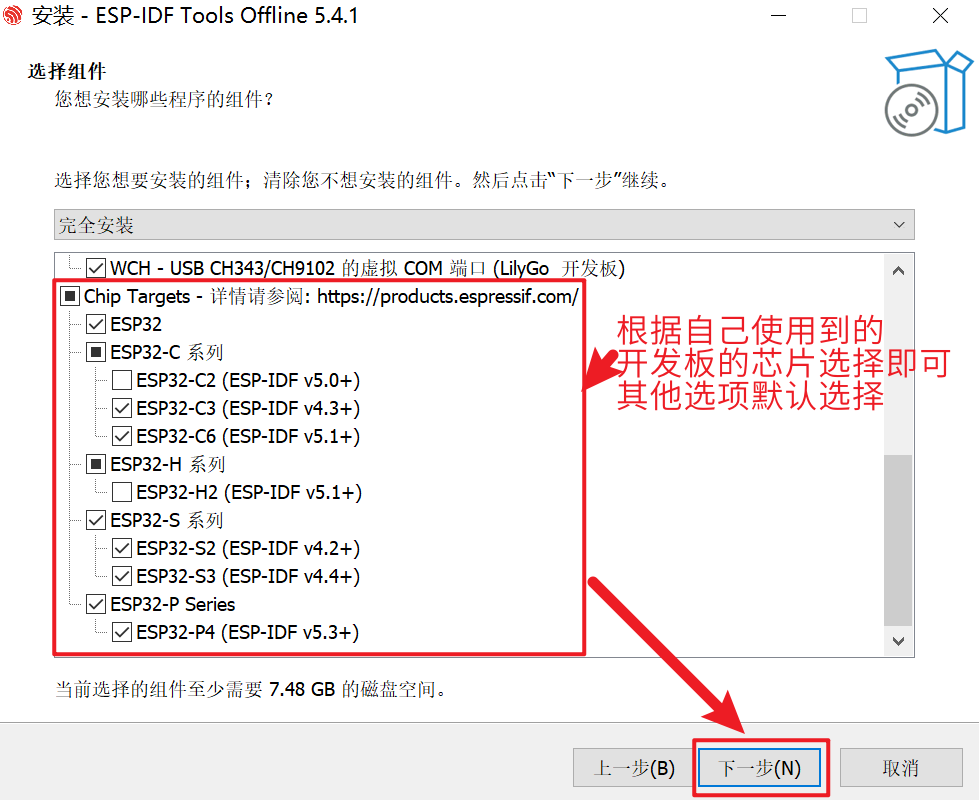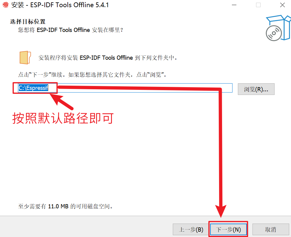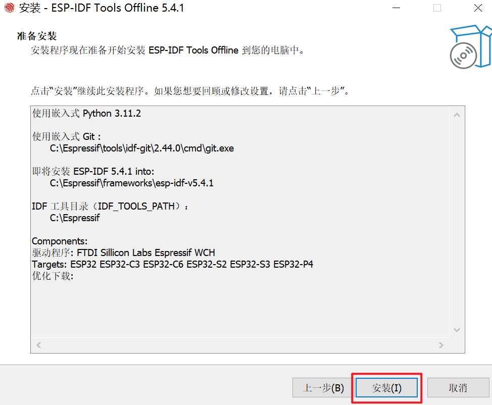 确定上面的软件都已就绪后,接下来双击这个安装包安装esp-idf:esp-idf-tools-setup-offline-5.4.1.exe,