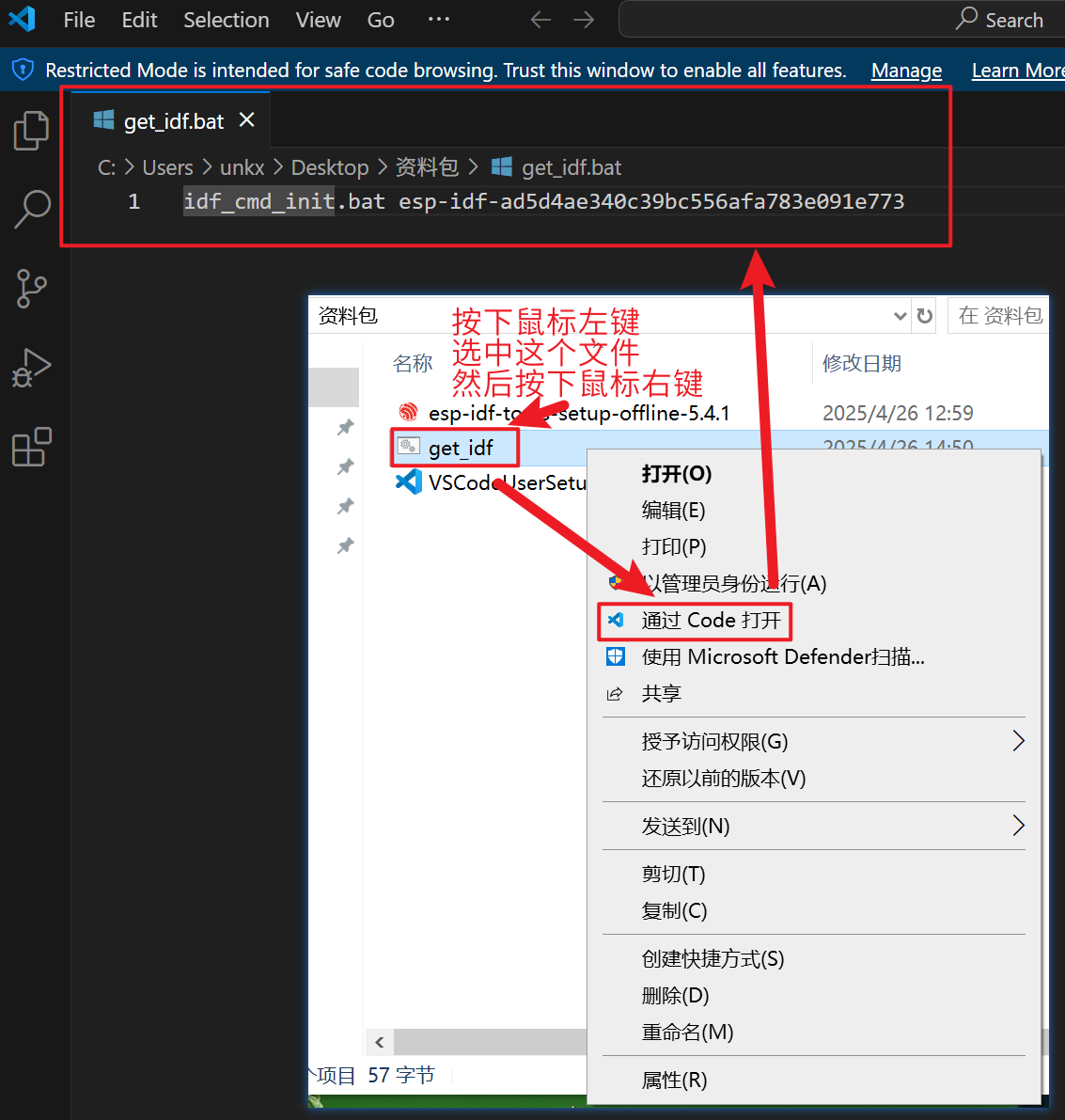 - 通过VScode打开get_idf.bat查看内容,如下所示: