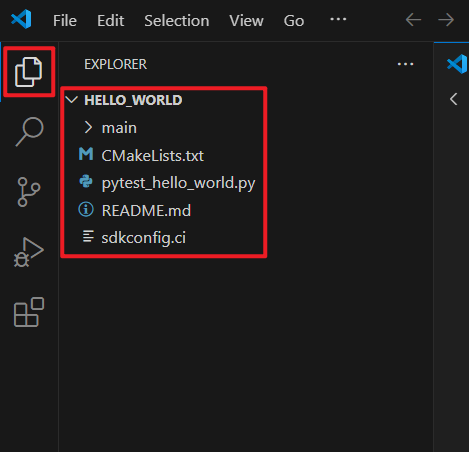 然后就能在VScode中看到打开的hello_world工程目录了,如下图所示: