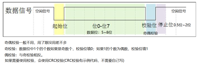 UART通信四要素:波特率、数据位长度、校验位、停止位。