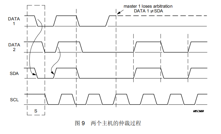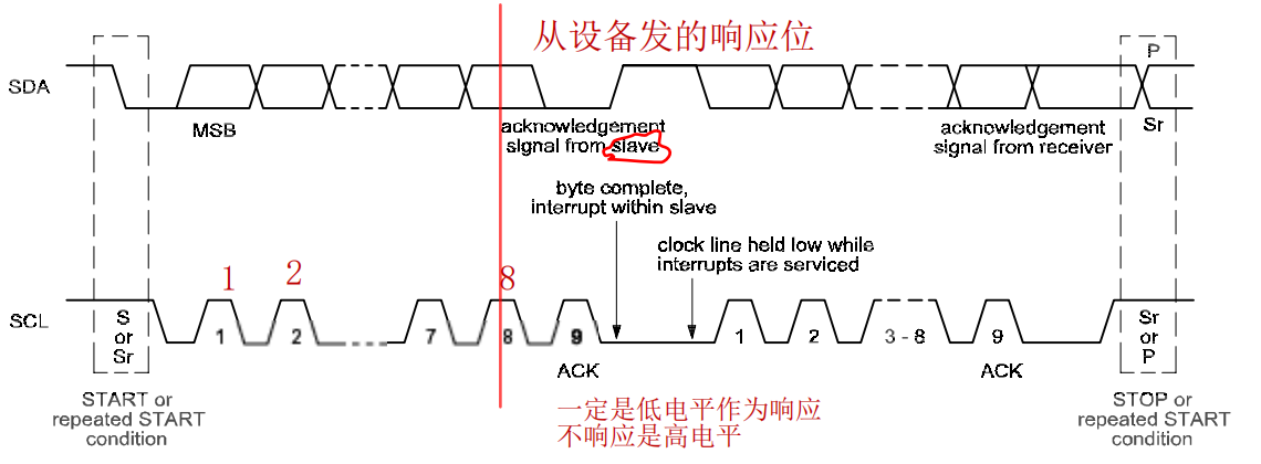 iic有一个起始信号:时钟线拉高,数据从高电平到低电平,形成iic的起始信号