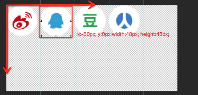 如显示上面 QQ 小图标, 则在合并图中X轴向右60像素, Y轴0像素, 截取宽高均为48像素;则 这个小图标就出来了: