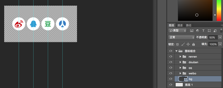 回归正题, 雪碧图的实现方案2就是使用photoShop来生成雪碧图, 并且雪碧图以PSD文件格式保留, 后续修改图标(或新增图标)只需要找到并修改该PSD即可, 再也不用保存原来的小图标了~