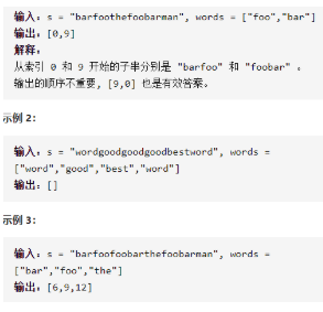 先把单词存放在哈希表,string-》次数,记录单词长度len和总长度allLen,遍历,对于每个开头,只要还在总长度内,就截取len存放在哈希表string->次数或者次数++,不能超过前面哈希表次数,总长度了就返回下标,剩余长度小于总长度不用遍历了