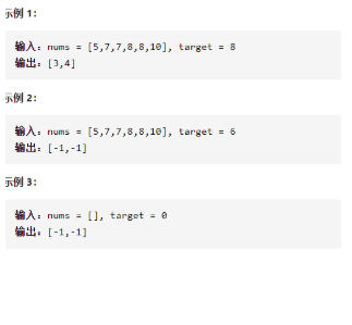 class Solution { public: vector<int> searchRange(vector<int>& nums, int target) { int n=nums.size(); if(n==0)return {-1,-1}; int left=0,right=n-1; while(left<=right){ int mid=left+(right-left)/2; if(nums[mid]==target){ int i=mid,j=mid; while(i-1>=0&&nums[i-1]==target)i--; while(j+1<=n-1&&nums[j+1]==target)j++; return {i,j}; } else if(target<nums[mid])right=mid-1; else if(target>nums[mid])left=mid+1; } return {-1,-1}; } };