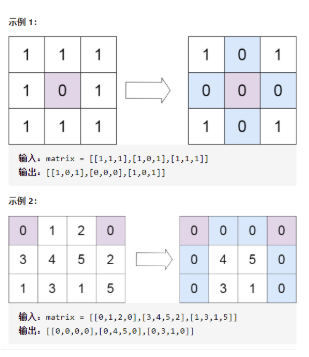 用第0行第0列作为标记,要先用两个变量rowcol遍历标记是否第0行第0列有0,然后遍历其他行列是否有标记在00,然后清算其他行列,然后清算0行0列