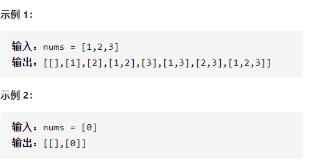 class Solution { public: vector<vector<int>> subsets(vector<int>& nums) { vector<vector<int>>ans; vector<int>ans1; dfs(0,ans,ans1,nums); return ans; } void dfs(int begin,vector<vector<int>>&ans,vector<int>&ans1,vector<int>&nums){ ans.push_back(ans1); if(ans1.size()==nums.size())return ; for(int i=begin;i<nums.size();i++){ ans1.push_back(nums[i]); dfs(i+1,ans,ans1,nums); ans1.pop_back(); } } };