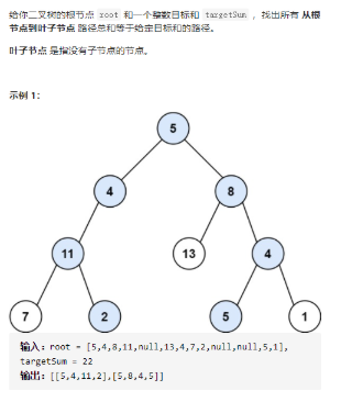 dfs,形参roottargetSum,得到root树所有等于targetSum的路径,由于根结点不算做叶节点所以不能到空节点,边界是叶节点