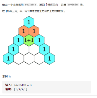 class Solution { public: vector<int> getRow(int rowIndex) { vector<int>pre; vector<int>cur={1}; for(int i=0;i<=rowIndex;i++){ if(!pre.empty()){ for(int j=1;j<=cur.size()-1;j++)cur[j]=pre[j]+pre[j-1]; cur.push_back(1); } for(int k=0;k<cur.size()-1;k++)pre[k]=cur[k]; pre.push_back(1); } return cur; } };