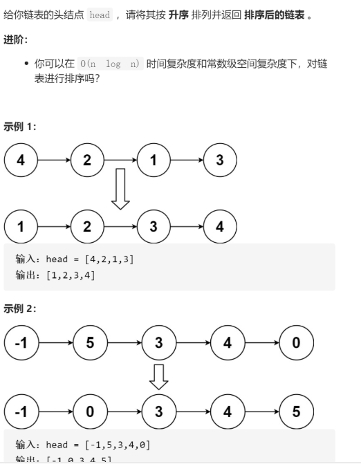 变量简洁正确完整思路 找中点分成两个子链表,对两个子链表排序,合并两个有序链表,dfs形参head得到head链表的有序链表,head为空或head->next为空边界返回,再对dfs返回两个有序链表进行合并, 画图 [image:1628080189374.png][image:1628080202299.png] class Solution { public: ListNode* sortList(ListNode* head) { return dfs(head); } ListNode*dfs(ListNode*head){ if(!head||!head->next)return head; ListNode*S=head,*F=head; while(F->next&&F->next->next){ F=F->next->next; S=S->next; } ListNode*nex=S->next; S->next=nullptr; ListNode*cur1=dfs(head); ListNode*cur2=dfs(nex); ListNode*dummy=new ListNode(-1,cur1); ListNode*ok=dummy; while(cur1&&cur2){ if(cur2->val<cur1->val){ ListNode*nex2=cur2->next; ok->next=cur2; cur2->next=cur1; ok=cur2; cur2=nex2; }else { ok=cur1; cur1=cur1->next; } } if(cur2)ok->next=cur2; return dummy->next; } };