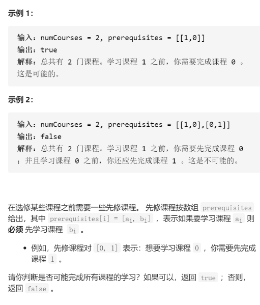 变量简洁正确完整思路 拓扑排序,图edges前置节点对应当前节点,入度indegrees节点对应入度,topoSort形参n寻找n个节点组成拓扑排序,que存储入度为0的节点 class Solution { public: vector<int> findOrder(int numCourses, vector<vector<int>>& prerequisites) { edges.resize(numCourses); indegrees.resize(numCourses); ans.reserve(numCourses); for(auto &nodes:prerequisites){ int cur=nodes[0],pre=nodes[1]; edges[pre].push_back(cur); indegrees[cur]++; } return topoSort(numCourses); } private: vector<int>topoSort(int n){ queue<int>que; for(int i=0;i<n;i++)if(indegrees[i]==0)que.push(i); while(!que.empty()){ int cur=que.front();que.pop(); ans.push_back(cur); for(int nex:edges[cur])if(--indegrees[nex]==0)que.push(nex); } if(ans.size()<n)return {}; return ans; } //若下标不连续或不为int,vector换成unordered_map vector<vector<int>>edges; vector<int>indegrees; vector<int>ans; };