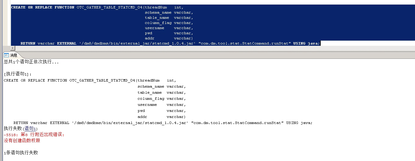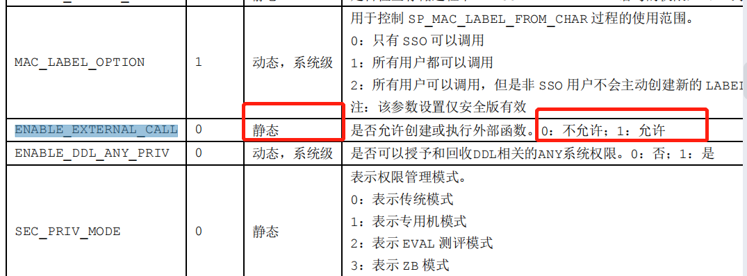 修改ENABLE_EXTERNAL_CALL参数允许创建外部函数并重启数据库;
