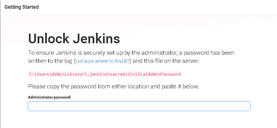 浏览器访问:http://**IP**:8080,进入Jenkins初始化页面,第一次启动时间可能有点长,耐心等待。进入成功后会看到如下画面,按提示路径打开密码文件,输入密码: