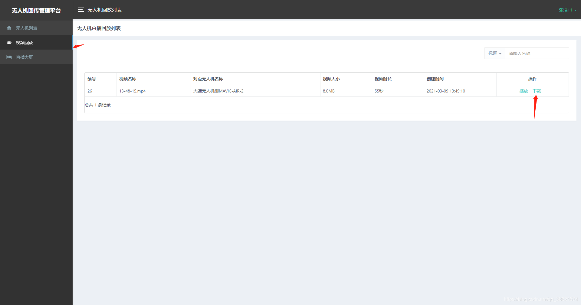3:持久化自动保存大疆无人机回传的视频以及音频,并且在浏览器支持查阅以及下载等;