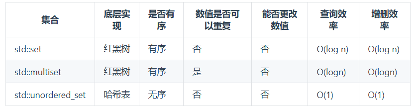 此时就要使用另一种结构体了,set ,关于set,C++ 给提供了如下三种可用的数据结构: