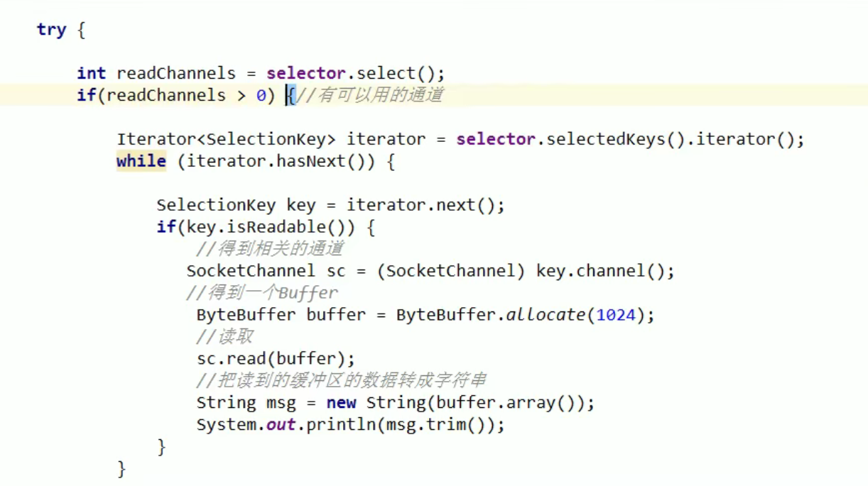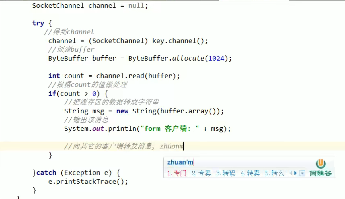 服务器收到消息并转发给其它客户通道