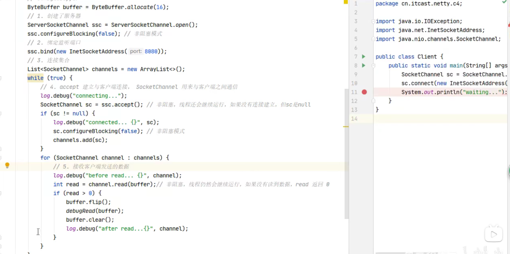 单线程非阻塞模式下:问题,单线程过劳死,一直在while的循环体内运行!!!