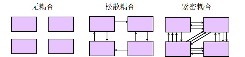 耦合度:耦合度是指软件模块之间的依赖程度,一般可以分为紧密耦合,松散耦合和无耦合。