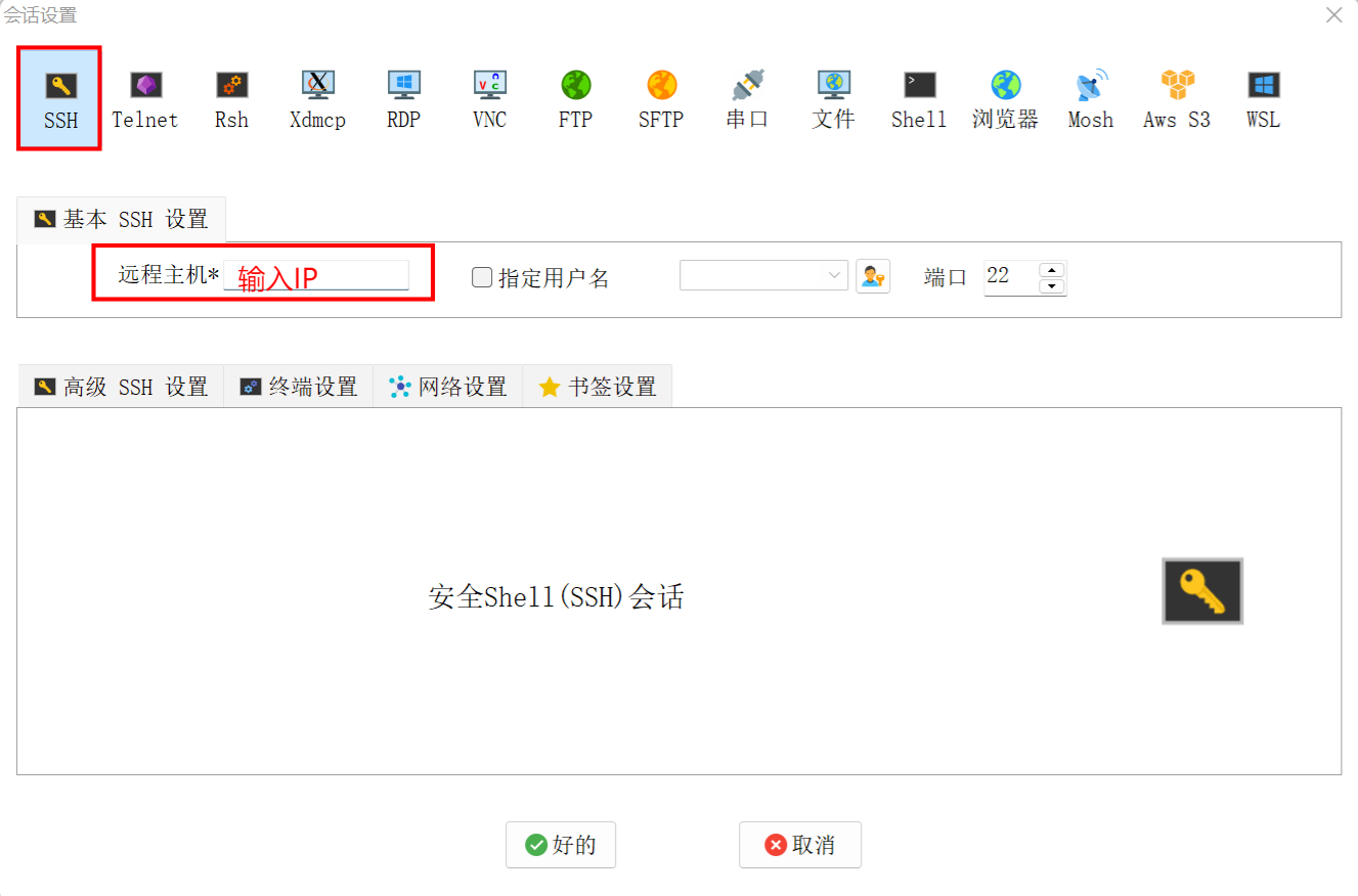 首先下载“MobaXterm” 然后使用“ip addr”使用获取IP,使用“SSH”方式输入IP连接
