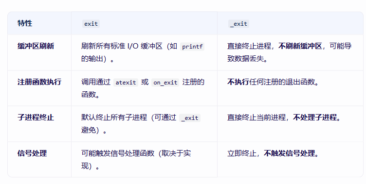 - 适合需要快速终止或避免缓冲区操作的场景(如子进程)。