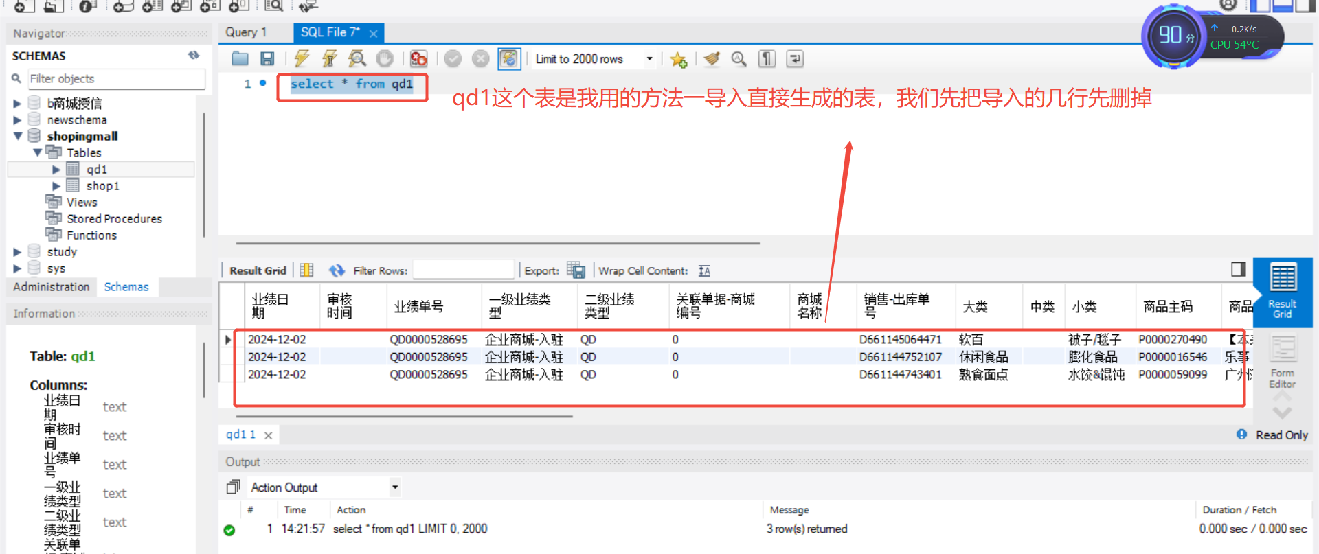 mysqlworkbench导入csv文件方法2(代码版)